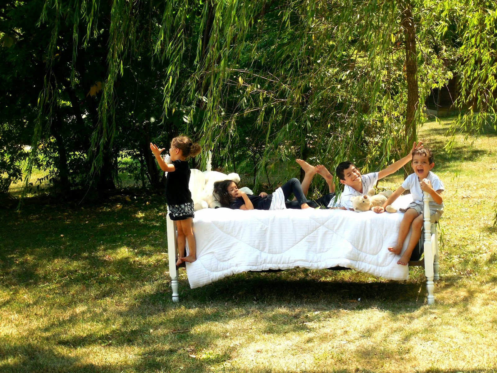 I filled in holes, sanding it down, & painted it white. It is not a perfect piece. If you look closely, it is not worthy to be in someone's bedroom. With that being said, I decided to set it up outside and have some fun with the kids.